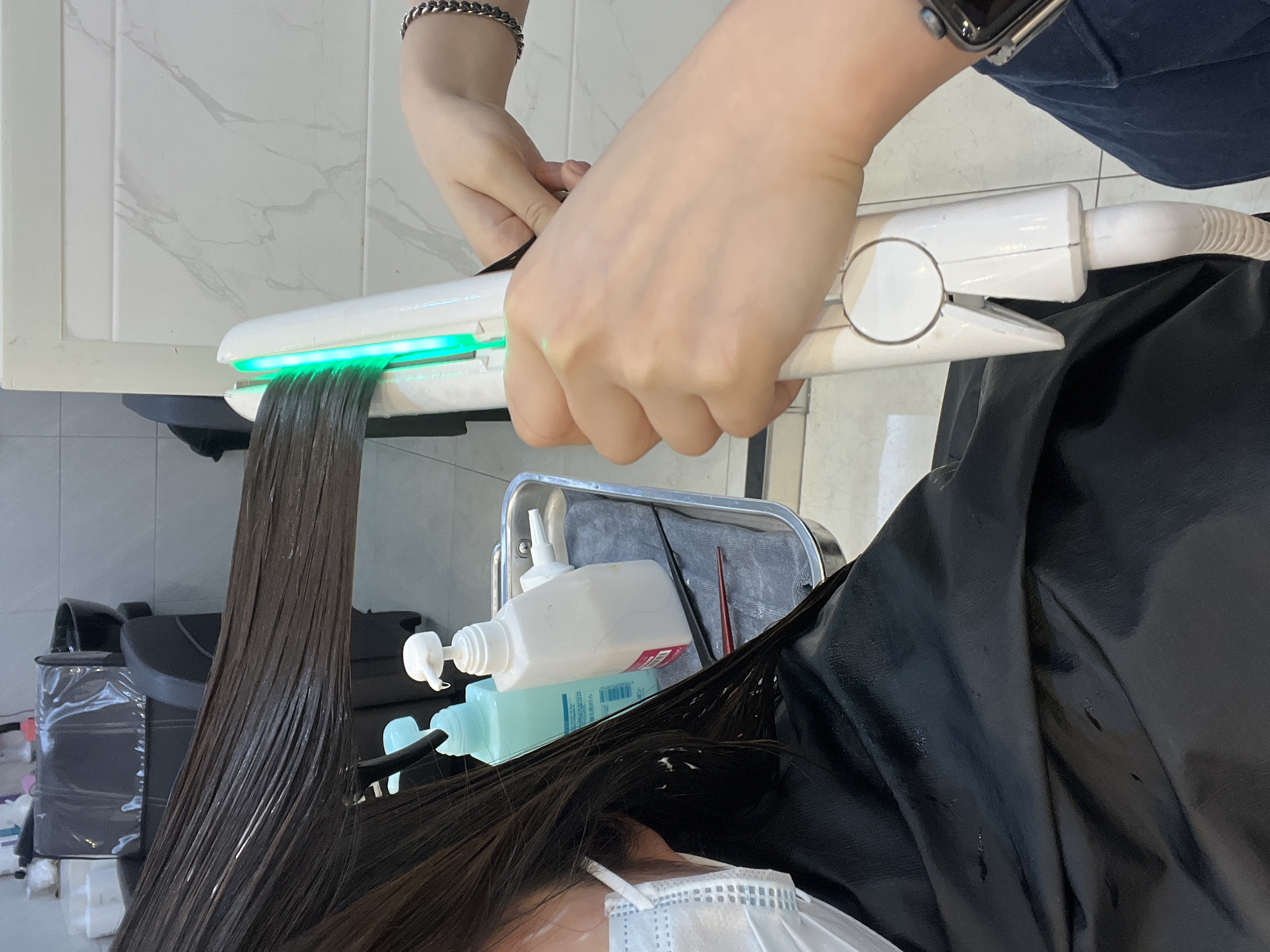 모발 속에 흡수시킨 클리닉 제품이 빠져나오지 못하도록 스티머를 이용해줍니다
