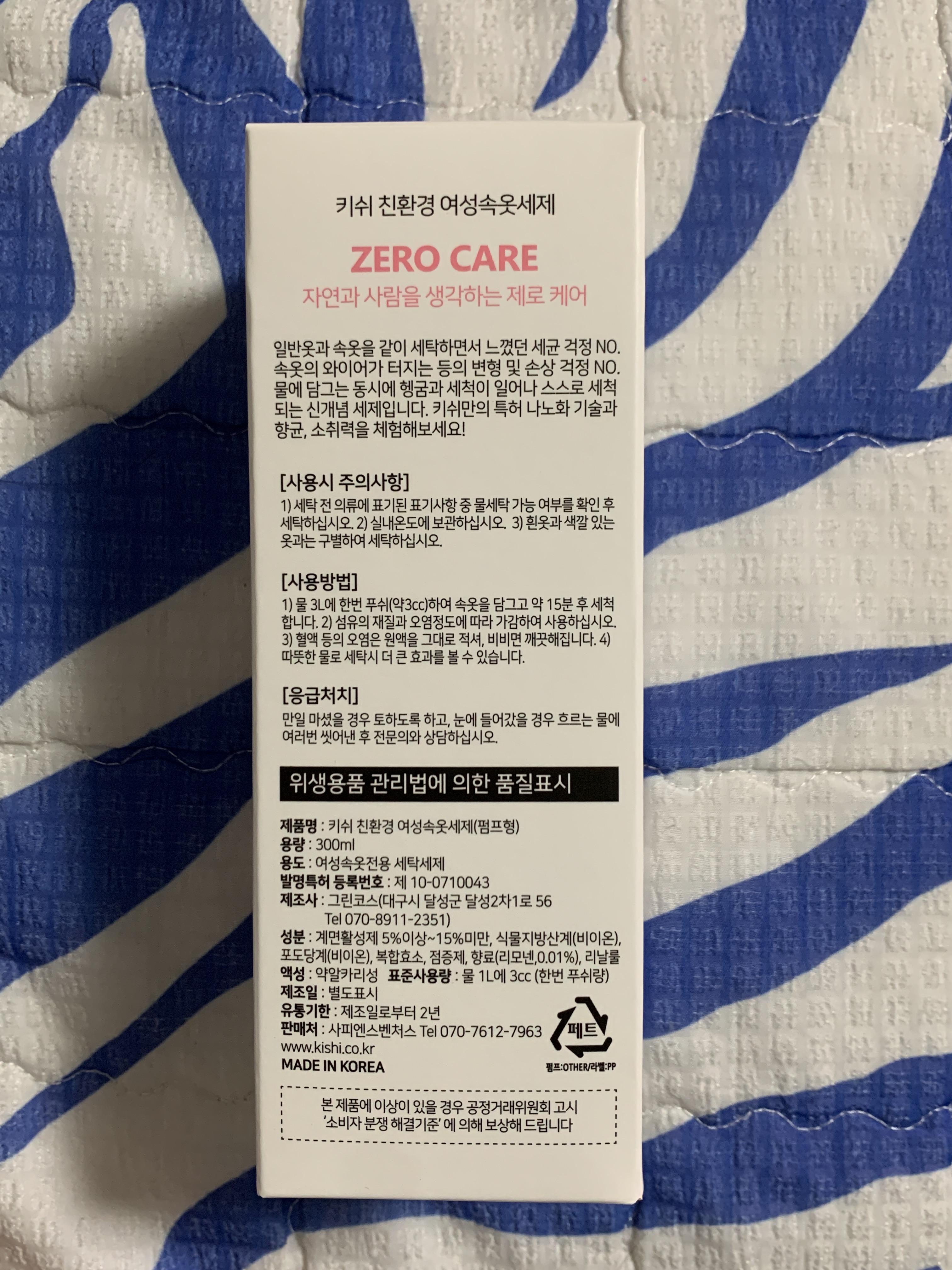 키쉬여성속옷전용세제를 물에 풀어서 사용하시거나
