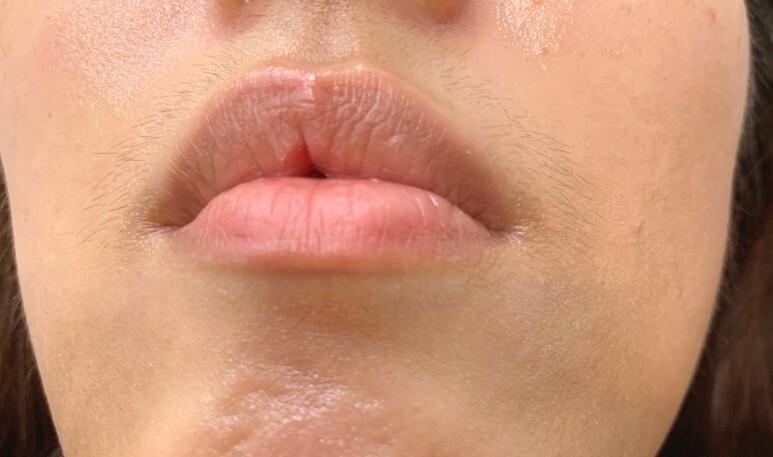 눈썹칼로 깎다보니 거뭇하게 티가 나는 인중수염