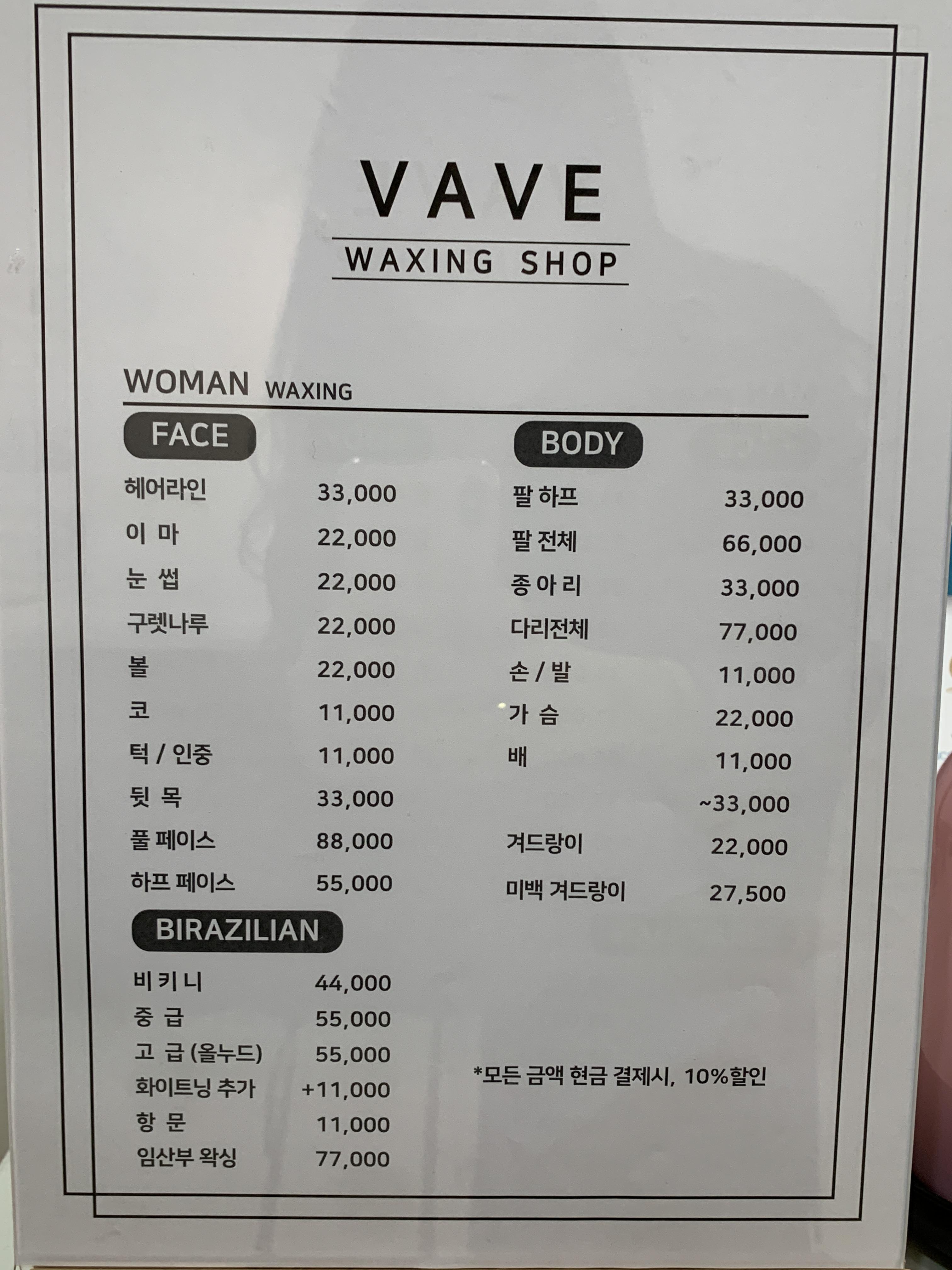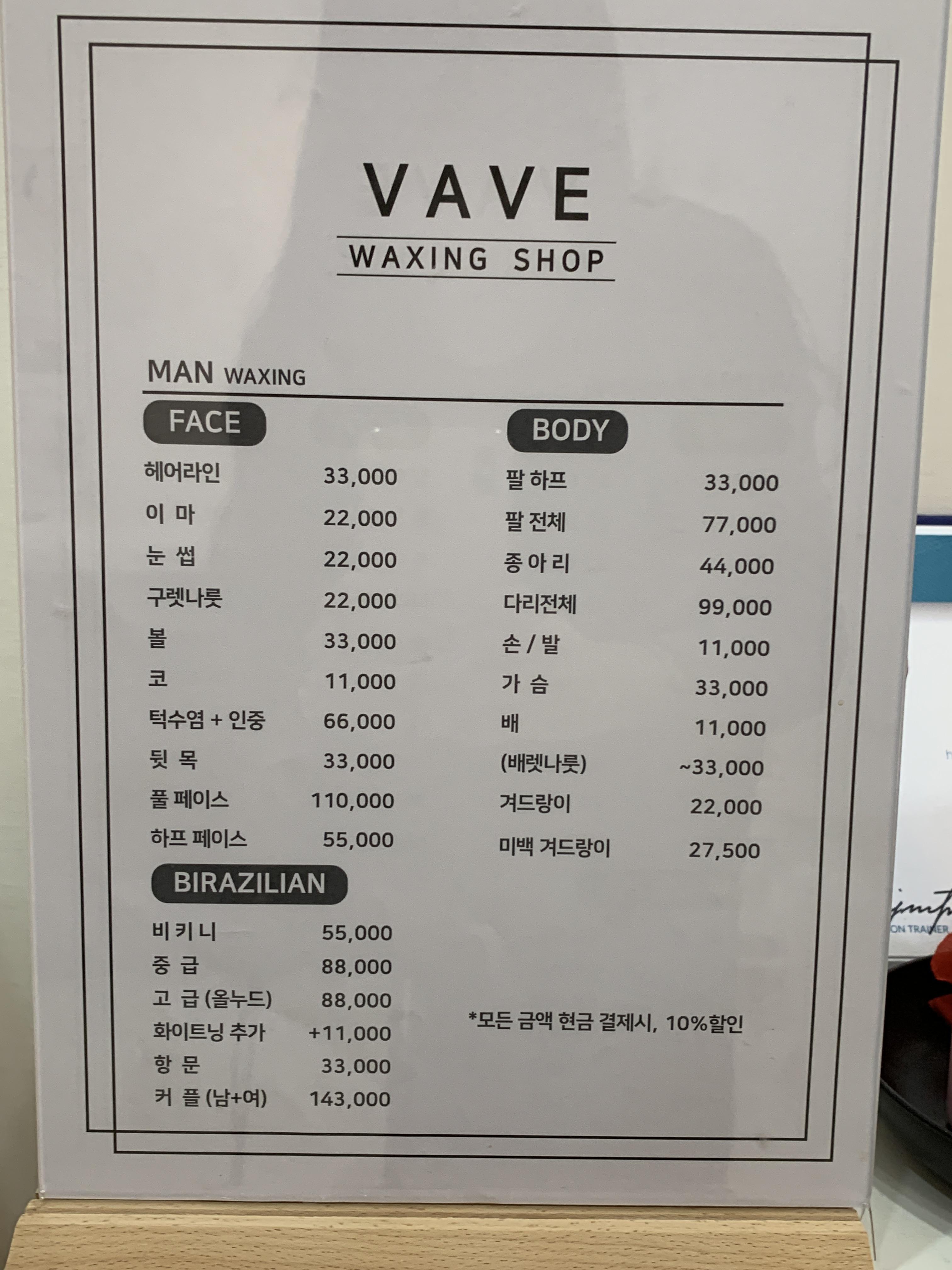 현금 결제 시 10% 할인해주는 남포동베이브왁싱