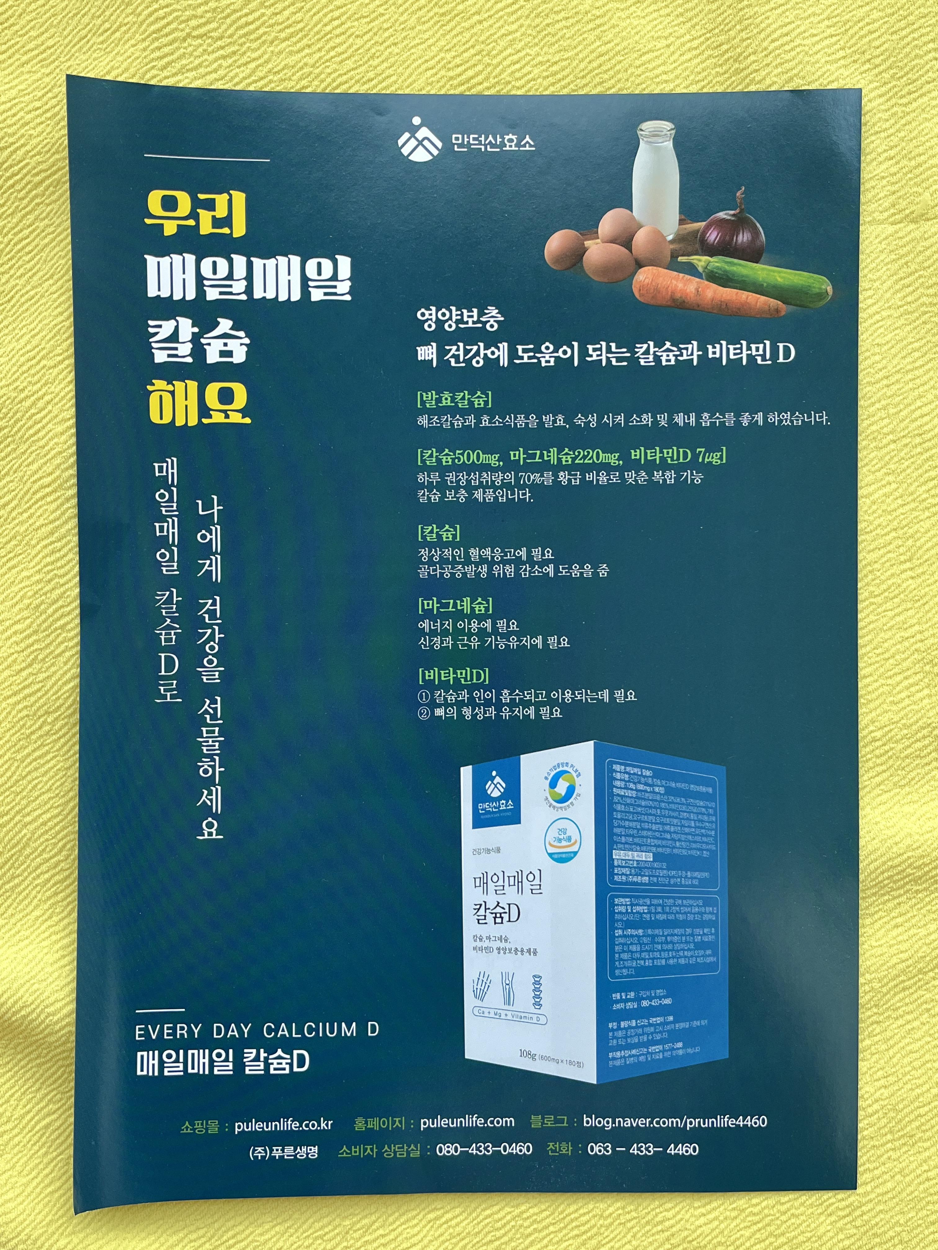 만덕산효소 매일매일 칼슘D 영양보충제는