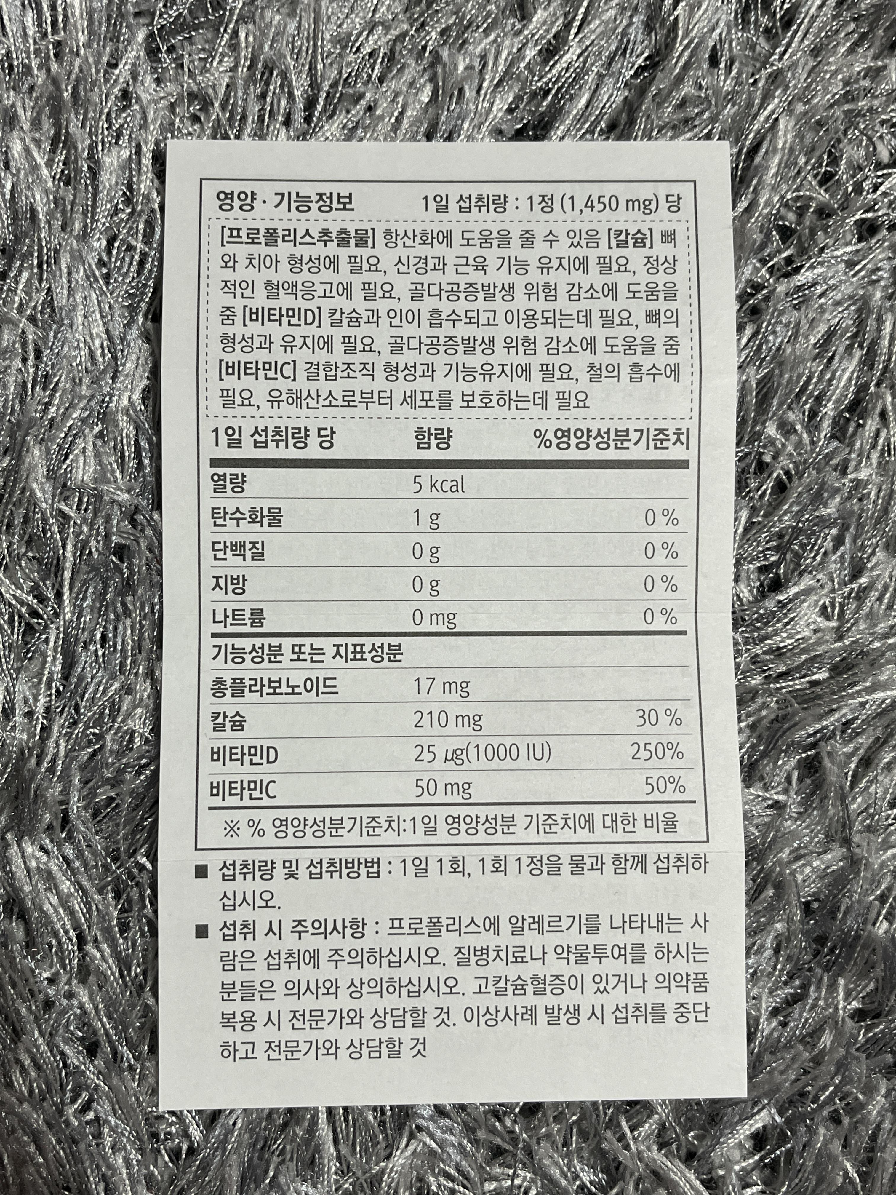 프로폴리스 칼슘 비타민 제품 건강기능식품이예요