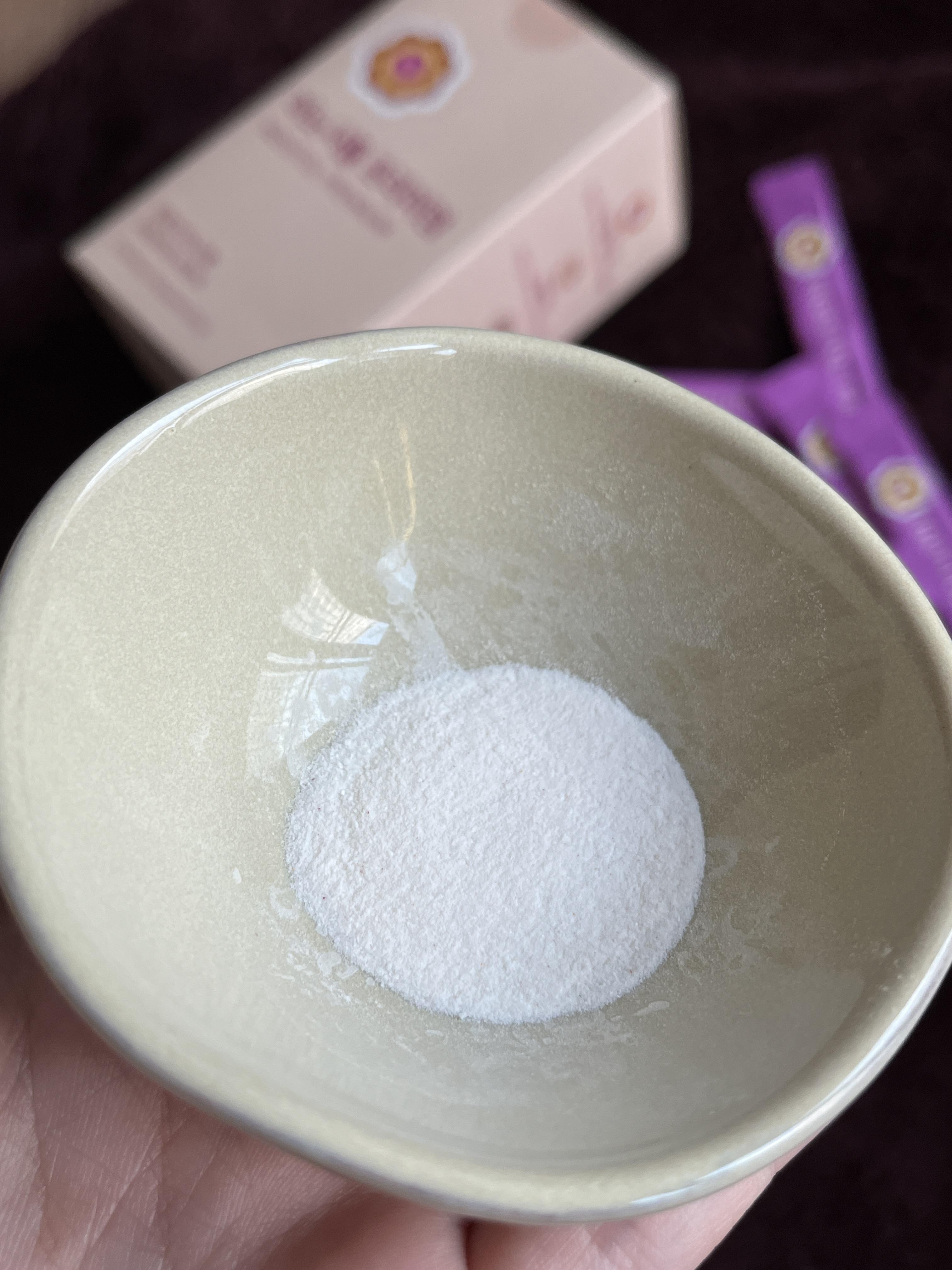 하얀색 가루 속에 붉은색 가루가 보여요